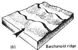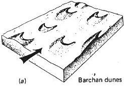 Diagrams showing the principal dune types and the wind direction responsible for their formation. aus: Greeley, R. & Iversen, J.D. (1985), p.163