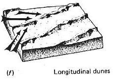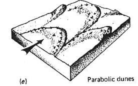 Diagrams showing the principal dune types and the wind direction responsible for their formation. aus: Greeley, R. & Iversen, J.D. (1985), p.163